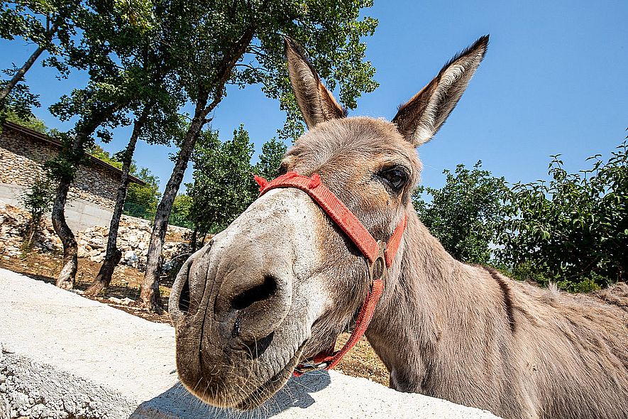 U našem DVORIŠTU SA DOMAĆIM ŽIVOTINJAMA djeca mogu otkriti koliko je veliki konj, kako smrdi koza ili koliko je glatko krzno zeca. Mogu čuti koku kako kokodače dok nese jaja, psa koji laje i magarca koji njače dok traži nešto za jelo.